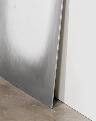 The steamy environment, the feeling of water on your skin, your hazy reflection getting clearer and clearer. Polished by hand and defined by material subtraction, Steam Mirror embodies a specific moment: the act of wiping away the condensation that gathers on a bathroom mirror with the palm of your hand. Repeating the same motion, the polishing of Steam Mirror was entirely done by hand. Each stage of sanding - from grit 40 to grit 5000 - revealed distinctive irregularities and textures inherent to the industrial nature of the material.